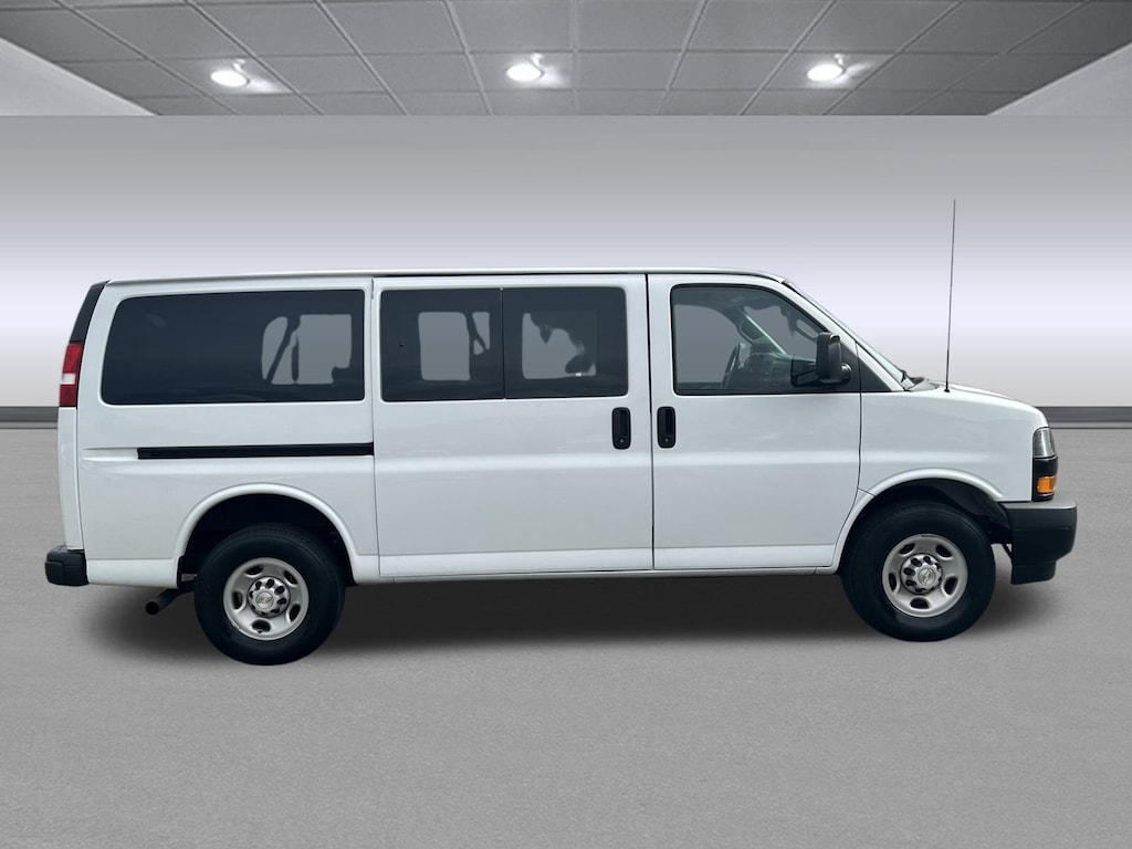 This Chevrolet Express Passenger boasts a Gas V6 4.3L/ engine powering this Automatic transmission. TRANSMISSION, 8-SPEED AUTOMATIC, ELECTRONICALLY CONTROLLED with overdrive and tow/haul mode. Includes Cruise Grade Braking, Powertrain Grade Braking and Tap-Up/Tap-Down Driver Shift Control (STD), SUMMIT WHITE, STEERING WHEEL, LEATHER-WRAPPED, INCLUDES (W1Y) MOUNTED AUDIO CONTROLS.